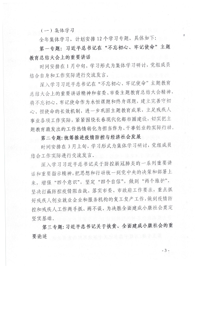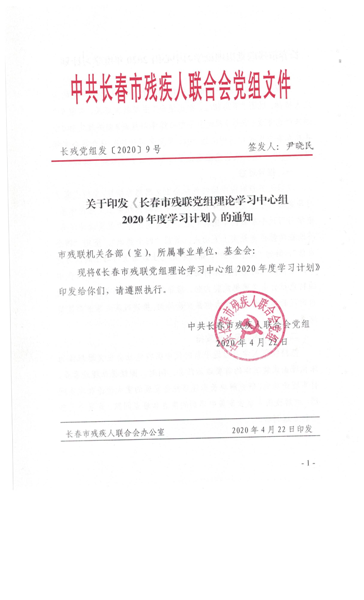 关于印发《长春市残联党组理论学习中心组2020年度学习计划》的通知