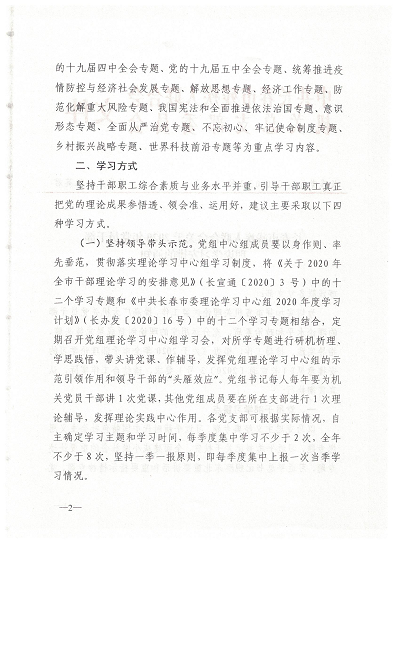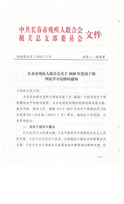 长春市残疾人联合会关于2020年党员干部理论学习安排的通知