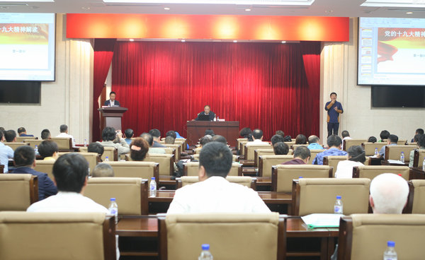 宣讲会上,潘宏峰理事长从党的十九大的主题、习近平新时代中国特色社会主义思想、十八大以来我国发生的历史性成就与变革、中国特色社会主义进入新时代与新时代党的历史使命、我国社会主要矛盾的变化、“两个一百年”奋斗目标的战略部署、我国经济社会发展重大战略部署、坚定不移推进全面从严治党八个方面,对党的十九大精神进行了系统、全面、深入的讲解。同时,强调了学好十九大精神的重要意义,提出了学好十九大精神的具体要求。