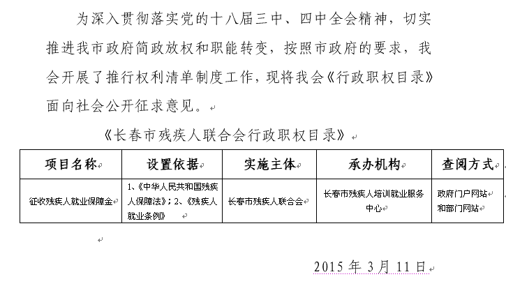 信息索取码:220102000701001201500018 来源:市残联维权部