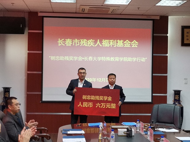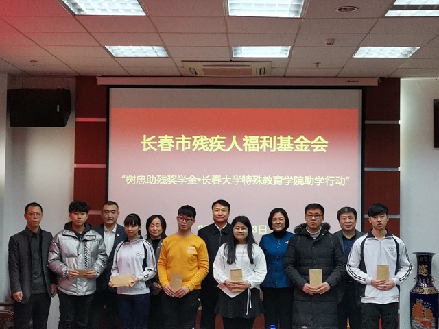 12月3日是第29个“国际残疾人日”,当天上午,由长春市残疾人福利基金会组织开展的“树忠助残奖学金、长大特教助学行动”奖学金项目签字及发放仪式在长春大学举行,活动为12名贫困残疾大学生发放助残奖学金6万元。