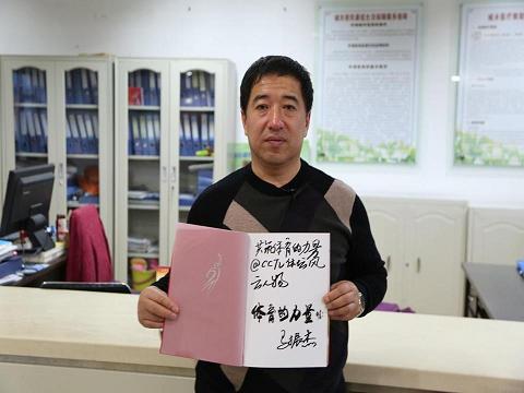 图为马振杰展示“残疾人体育精神奖”提名奖纪念名册